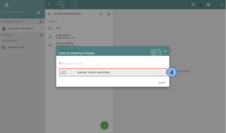 Configurar permissões de acesso de um usuário especifico aos catálogos de endereços.