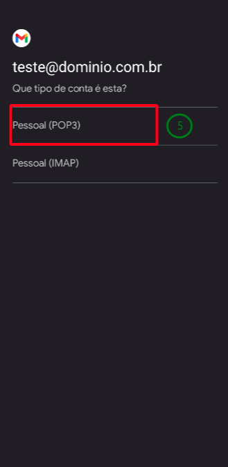Selecione a opção Pessoal (POP)(5)