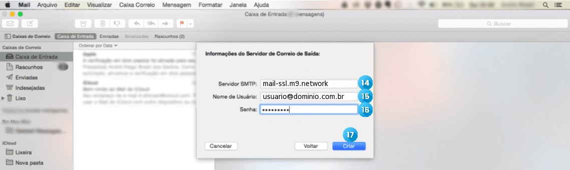 Após finalizar esta parte, o Mail volta para a caixa de entrada, nesse momento ainda restam algumas configurações a serem feitas.