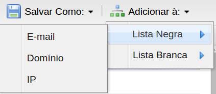 “Atualizar” (10) - para atualizar a página atual clique na opção Atualizar. “Liberar e-mails” (11) - É utilizado quando uma mensagem é barrada na “Quarentena de Vírus” e é necessário que e a mesma seja entregue na caixa postal. “Excluir E-mail” (12) - Caso queira remover a mensagem antes de 14 dias clique em Excluir E-mail. “Adicionar à:” (13) - Será exibida as opções “Lista branca”, “Lista Negra”. Selecione um e-mail que contém o corpo da mensagem na auditoria e clique em “Adicionar à:”, clicando ambas as opções é possível adicionar o “E-mail”, “Domínio” “IP” do remetente na “Lista branca” Ou “Lista Negra”.