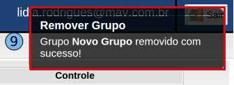 Logo depois, será exibida a mensagem (grupo removido com sucesso) (9).